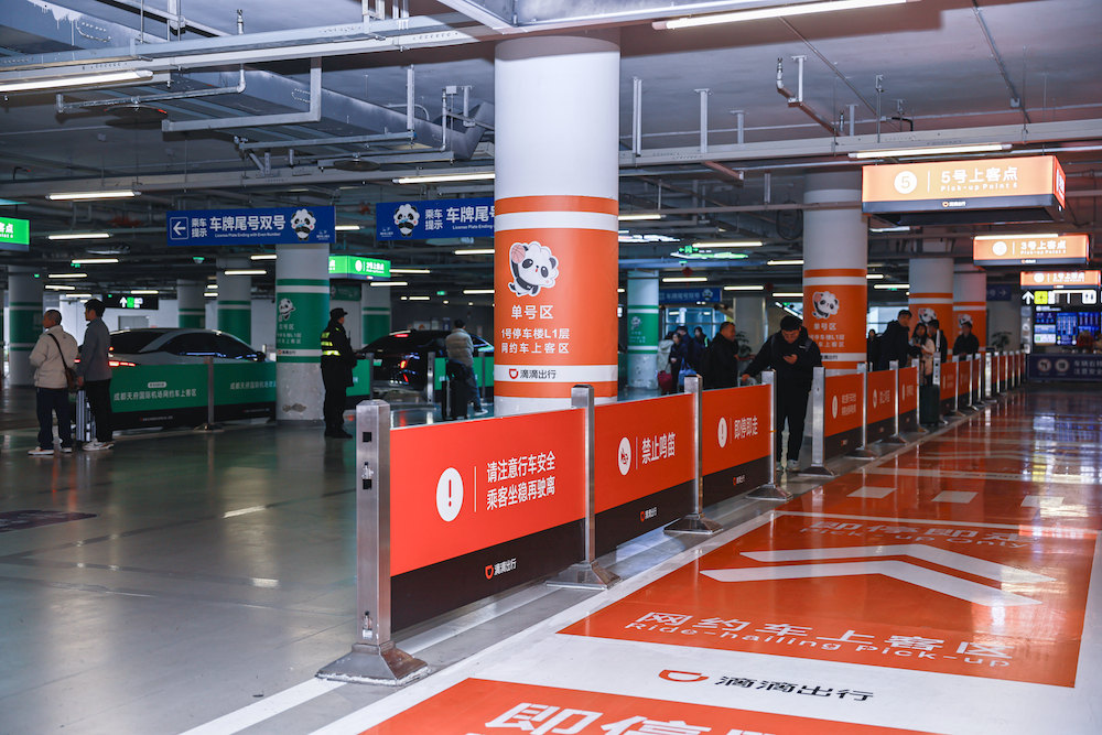 图为:成都天府国际机场滴滴上车区